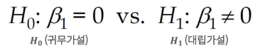 - β에 대한 p-value가 낮으면 기울기가 0이 아닌 것으로 판명 (H1채택)