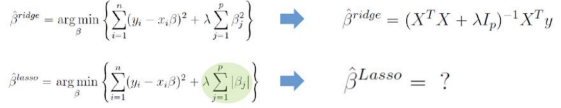 : Ridge Regression과 달리 Lasso Formulation은 Closed Form Solution을 구하는 것이 불가능