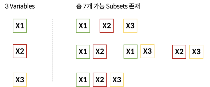 : 경우의 수는 2^p - 1 (p는 Feature의 갯수)