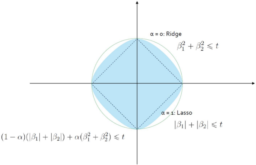ElasticNet은 Ridge의 L1-norm과 LASSO의 L2-norm을 섞음