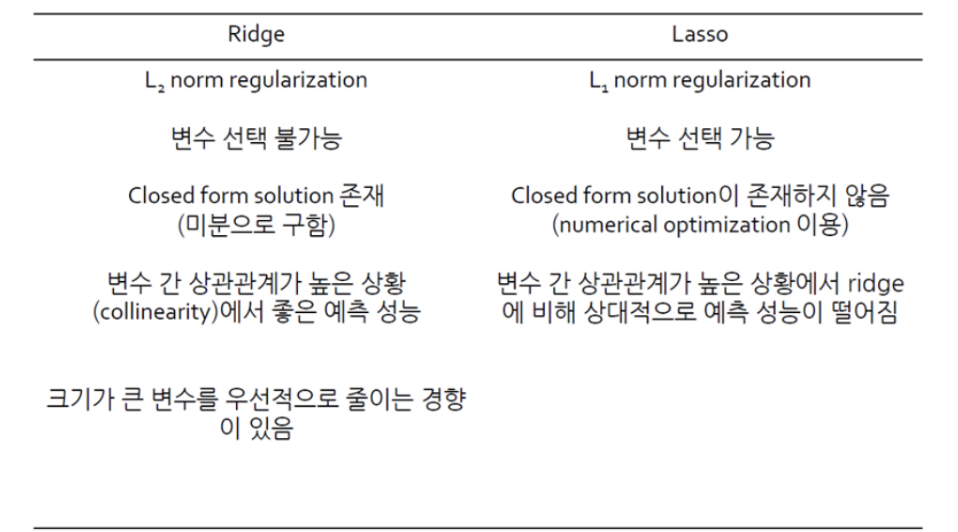 - Closed form solution이 존재하지 않음: Lasso 회귀는 미분 가능한 closed form solution이 존재하지 않습니다. 따라서 수치 최적화(numerical optimization)를 사용하여 해를 구해야 합니다.