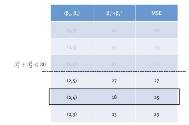 : 제곱 오차를 최소화하면서 회귀 계수 β^2을 제한함