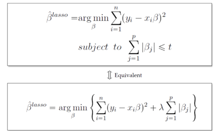 : Error를 Minimize하는 제약 조건에서는 필요 없는 Feature의 β(계수)에 Penalty를 부여함