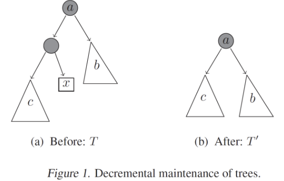 한편 subtree b의 depth는 바뀌지 않음. 즉 [x[를 제거하면 subtree c에 있는 data들의 depth가 1씩 감소