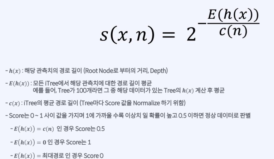 - 데이터 포인트들이 트리의 어느 위치에 놓이는지, 그리고 그들이 분할된 방법을 통해 **이상치 점수**를 계산할 수 있습니다. **깊이(depth)**가 깊을수록 포인트가 일반적이지 않으며, 이는 이상치일 가능성이 높다는 의미입니다.