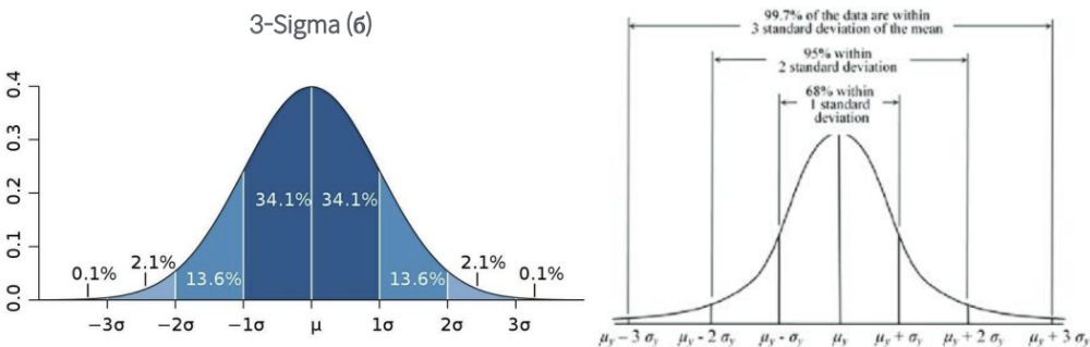 표준편차의 3배인 3-Sigma (σ)의 범위가 전체 Data의 99.73%를 포함