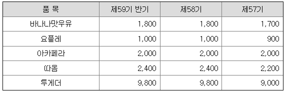 주원료인 우유(원유)는 국내산지 직접조달 및 낙농진흥회를 통한 구매로 조달하고 있습니다. 원재료 중 가장 큰 비중을 차지하는 원유에 대한 매입액 및 단가 추이는 다음과 같습니다.
