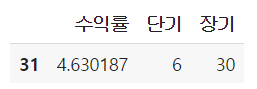df_final = (df_result[['수익률']].cumprod().tail(1) - 1) * 100
