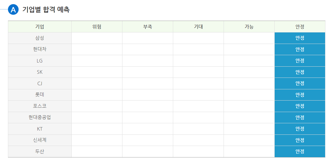 다행히 대부분의 대기업에서 안정권이 나왔다.